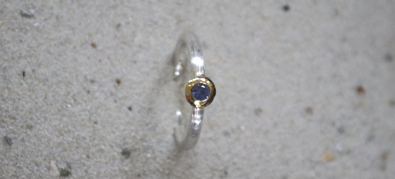 Ringschiene: Silber mattiert mit Gelbgold 900
