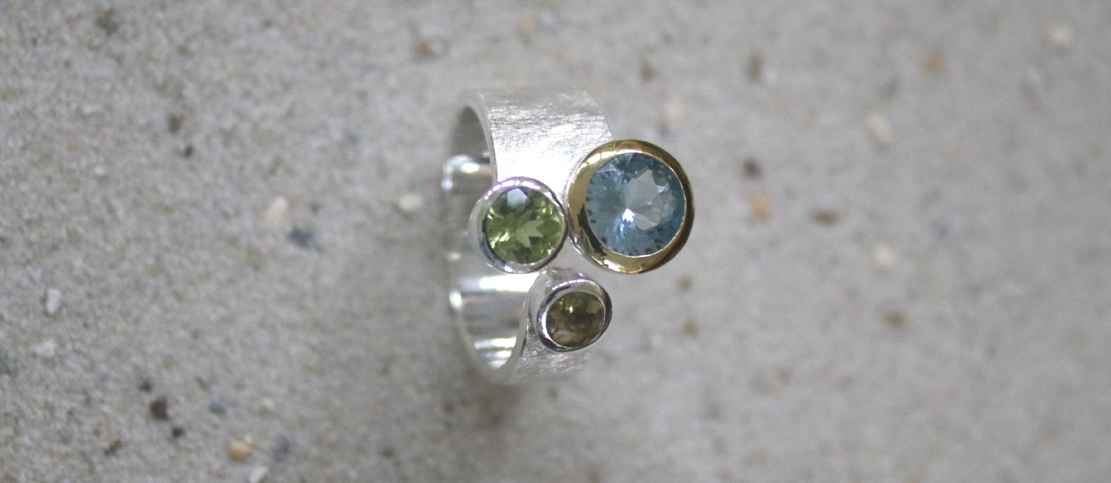 Ring Silber/Gold mit Topas, Peridot, Citrin
