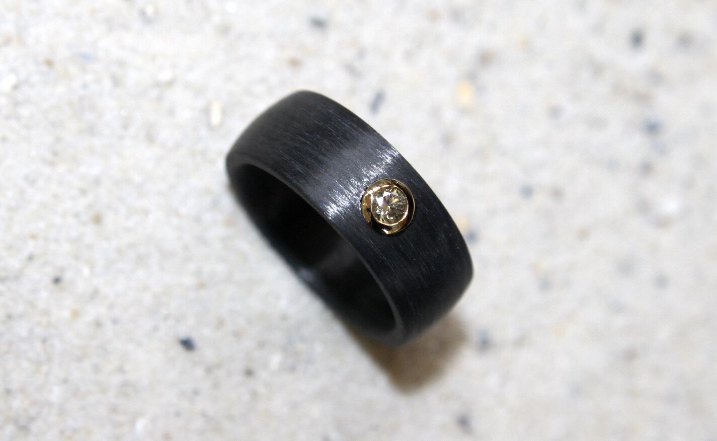 Spannring Carbon mit 6-eckigem Diamant 0,25ct